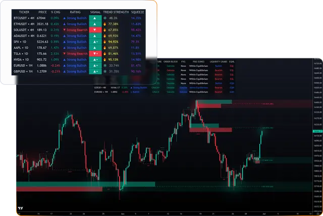 Automatiza el análisis de price action complejo, recibe señales avanzadas e identifica reversiones del capital inteligente—todo en tus gráficos de TradingView. Todos los conceptos clave en un único paquete de indicadores premium.